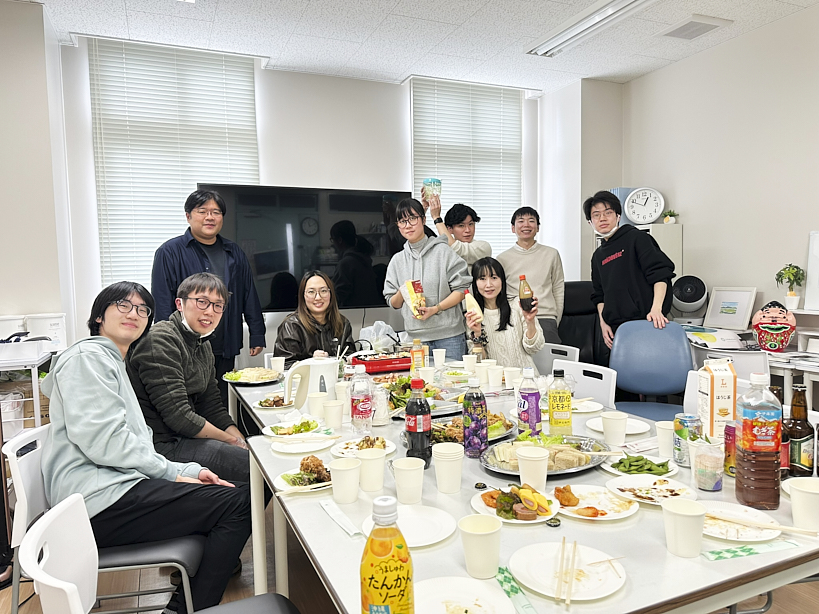 新年会を開催しました 少し時期は遅れましたが、新年会を開催しました。たこ焼きを囲みながら、和やかな時間を過ごすことができました。研究室配属中の生命科学科3年の高吉さんにも楽しんでいただけたようでよかったです。幹事として会の準備をしてくださった中原さん、たこ焼き器をご持参くださった島本さん、どうもありがとうございました! 2026.1.31